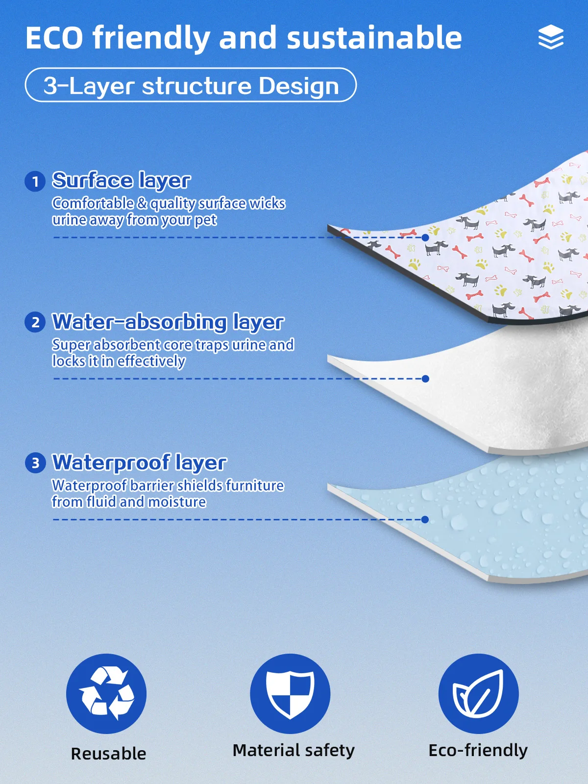 Fournitures pour animaux de compagnie en gros : tapis d'urine réutilisables et lavables de haute qualité pour chiots et chiens, imperméables et réutilisables.